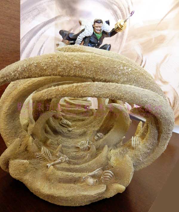 (2)但照片看不出來,很多零件的尖銳處造型都已經把紙戳破。(例如沙底台、社長的手指等)