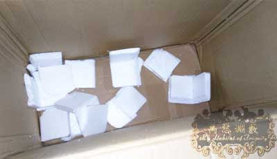 (3)把上圖保麗龍拿走,再把箱子拿出。下面全是破損的保麗龍角。